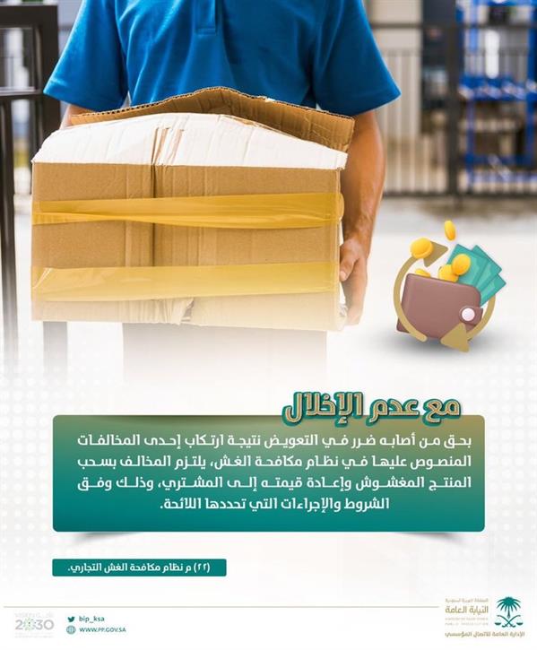 ولفتت إلى أن الشروط والإجراءات التي تحددها اللائحة تُلزم المخالف بسحب المنتج المغشوش وإعادة قيمته إلى المشتري.