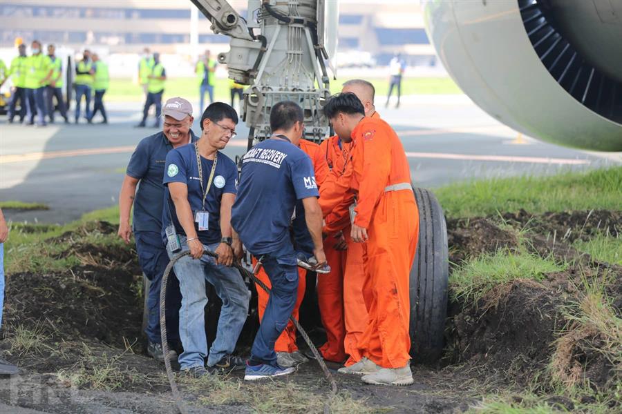وأوضح الشركة أنه بعد هبوط طائرتها من طراز “بوينج 777” في مطار نينوي أكينو الدولي بمانيلا انزلقت خارج المسار المؤدي إلى الصالة وتوقفت في المنطقة الرملية.
