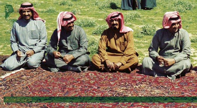 وأظهرت الصورة، الملك فهد بن عبدالعزيز وهو يجلس وبجواره الملك عبدالله بن عبدالعزيز والأمير سلطان بن عبدالعزيز وخادم الحرمين الشريفين الملك سلمان بن عبدالعزيز في روضة الخفس سنة 1976م.