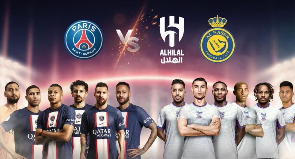 تنقل 20 قناة فضائية على مستوى العالم، بث مباراة كأس موسم الرياض بين نجوم النصر والهلال ضد باريس سان جرمان،